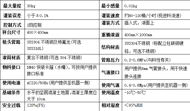 ■ 具自動(dòng)判別空桶皮重范圍功能及無(wú)桶不灌裝功能;