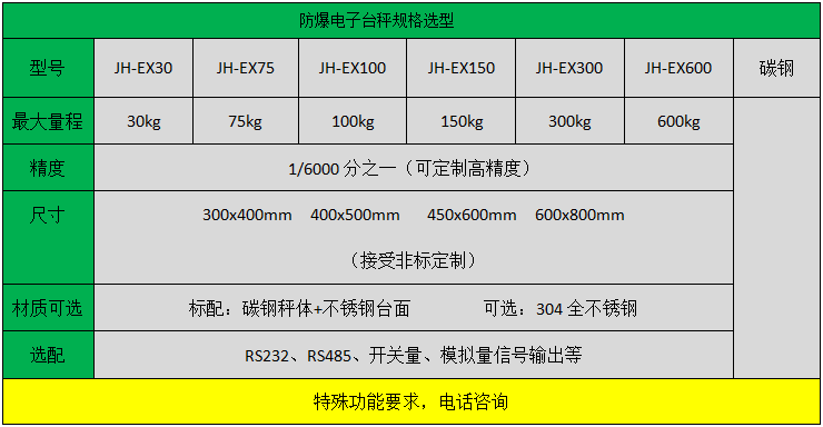 佳禾EX系防爆電子臺(tái)秤:是專為化工、醫(yī)藥、倉(cāng)儲(chǔ)等有爆炸性氣體和爆炸性粉塵環(huán)境而設(shè)計(jì)的專產(chǎn)品