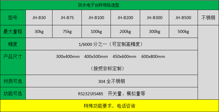 5、防水等級(jí)IP67。秤架使用304優(yōu)質(zhì)不銹鋼,并采用了二橫四縱的架構(gòu),超高強(qiáng)度與超高硬度,防水防腐,保證使用的壽命