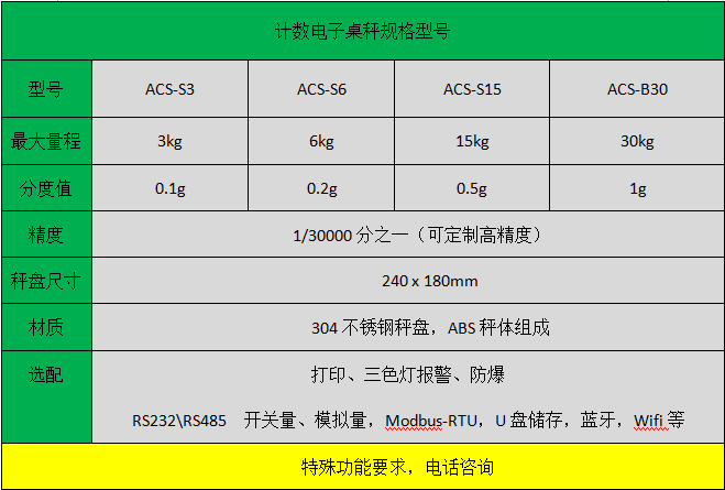 ACS系列計(jì)數(shù)電子桌秤是一款專為五金、工廠、食品加工等工業(yè)場(chǎng)合設(shè)計(jì)的高精度小量程產(chǎn)品。秤體工業(yè)采用不銹鋼秤盤與整機(jī)碳鋼結(jié)構(gòu)、高清大屏幕清晰按鍵,三窗口LCD液晶顯示